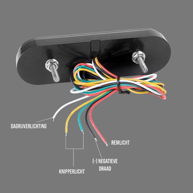 - Sluit de draden aan op de knipperlichten, de min (-) van je scooter en op het remlicht. Het is het beste om de draden aan te sluiten op de bestaande verlichting van je scooter.